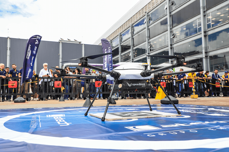 Demonstração inédita de entrega por drones com Correios, destacando liderança em mobilidade aérea inteligente.